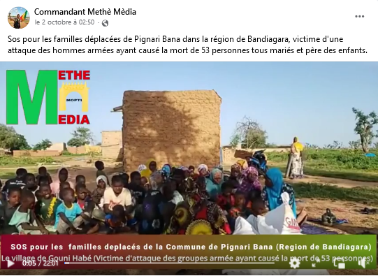 On September 19th, the video of residents of Goni Habé in Abidjan interviewed by Mali Kibarou TV is uploaded on Facebook. According to the villagers, more than 30 people would have been killed in Gouni Habé, near Sofara, by armed groups costumed in Donso hunters and military outfit.