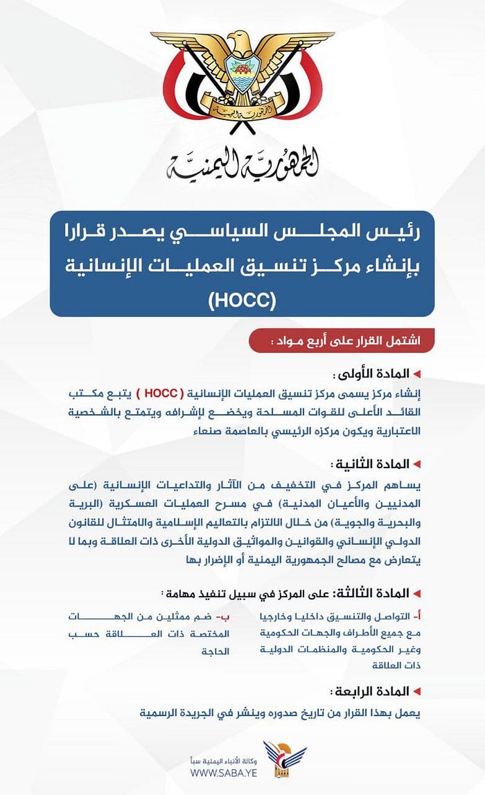 Ces communications ont forcé les autorités yéménites à envoyer des démentis concernant la légitimité du HOCC et son appartenance au groupe des Houthis.