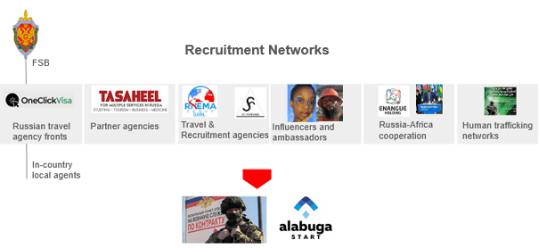 INPACT also identified an example where the involvement of Russian security services was explicitly mentioned – the Federal Security Service (FSB), which is believed to coordinate all or part of these recruitment networks. A significant portion of recruitment activities take place online, primarily on social media, which today constitutes one of the main channels for information and migration planning for young Africans.