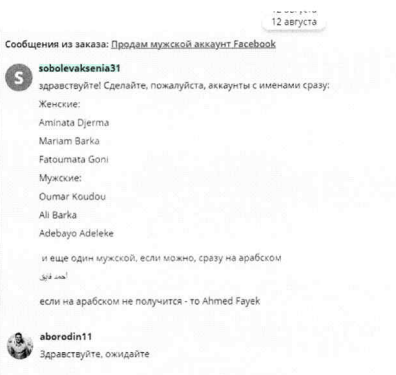 The operatives create an echo chamber of fake accounts online to amplify their narratives or mobilise sentiment. In August 2024, Ksenia Valeryevna Soboleva, working for Africa Politology as head of Media Department, placed an order on Telegram to buy Facebook accounts. She wrote to the service provider of “The Company”: “Please create accounts with these names right away. Profiles of women: Aminata Djerma, Mariam Barka […] and men: Oumar Koudou, Ali Barka“, “Oh, and for another man, if possible, [write the [name] directly in Arabic“. Soboleva, like a woman named Dina Trumm, also makes payments to pro-Russian Telegram accounts, including Russian journalist Abbas Djuma, who had 61,175 followers in August 2024 and was sanctioned by the United States.