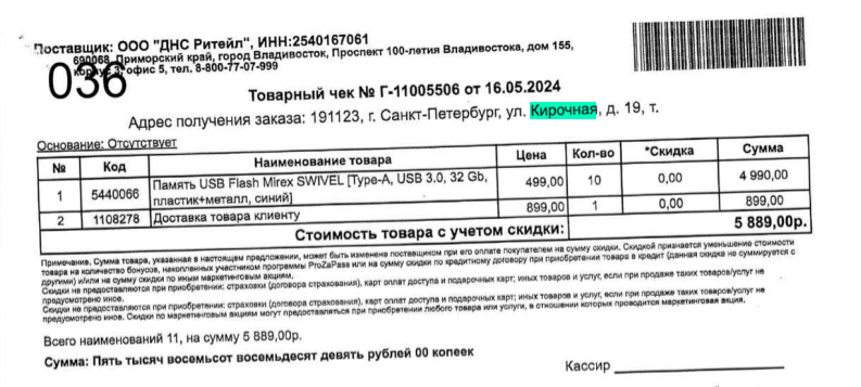 In 2024, the company registered good financial performance with a profit margin of 32%, a turnover of 6.7 million rubles (87,663 USD) and a net profit of 2.12 million Rubles (27,596 USD). All these numbers are below the yearly 251 million rubles threshold. In the leaked documents, an invoice for a USB key mentions a delivery address a couple of buildings away on the same street as JSC Inter.