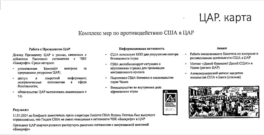 Excerpt from the CAR Strategy titled “Set of measures to counter the US in CAR”