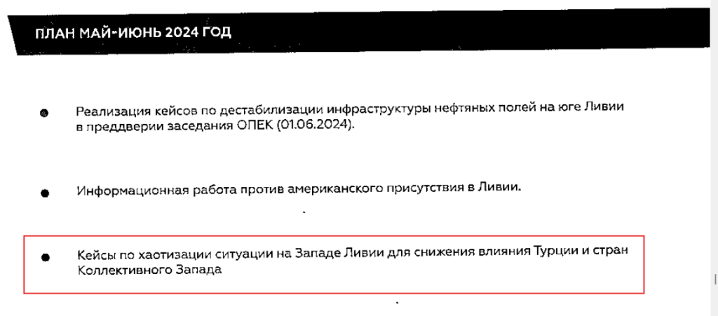 Excerpt of the “Global South Strategy” – part on Libya: “Chaotisation of the military and political situation in Western Libya to prevent the implementation of the US plan to control the situation in Libya”.