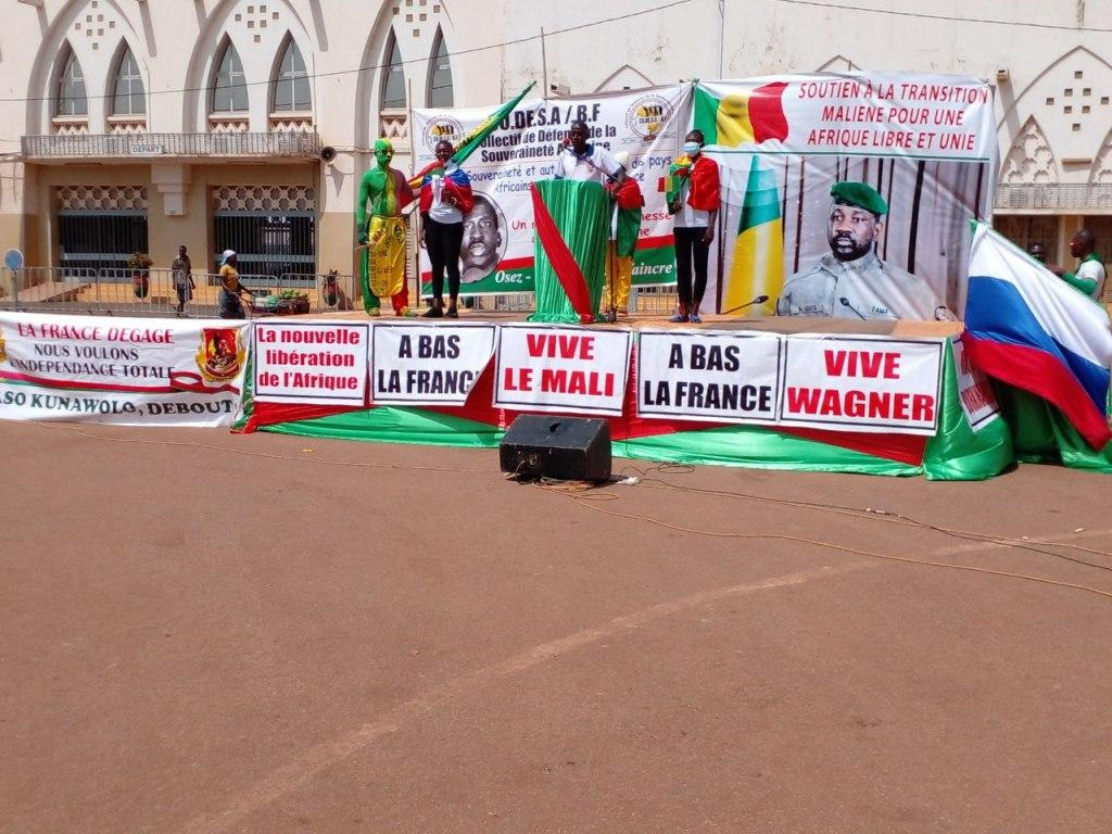 Photo taken by a RIAFANreporter (Prigozhin’s media) demonstation on 5 March 2022 in Ougadougou