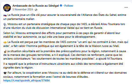 Finally the Russian House in Mali is also working with local activist groups aligned with Moscow’s views like Le Groupe des Patriotes du Mali (the Malian Patriotic Group) which is very straightforward about its allegiance and positioning.