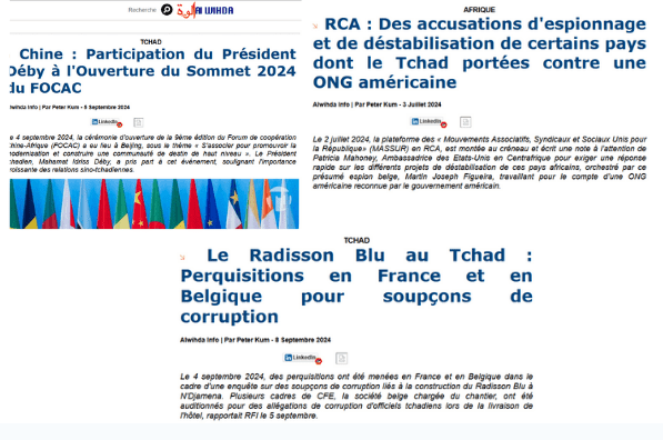 Traces of this strategy appear in leaked documents our consortium obtained listing articles Africa Politology allegedly paid. For Chad, Africa Politology sponsored 171 articles over a year amounting to 96,750 USD. The articles are a mix of praises to the Chad-Russia partnership, Chad interacting with the BRICS and articles mentioning deteriorating relations with the US and France. Some embarrassing affairs are amplified in the Chadian ecosystem while others are completely made up and serve discrediting Western partners. A journalist whose articles were included in the media budget stated he was not compensated for them.