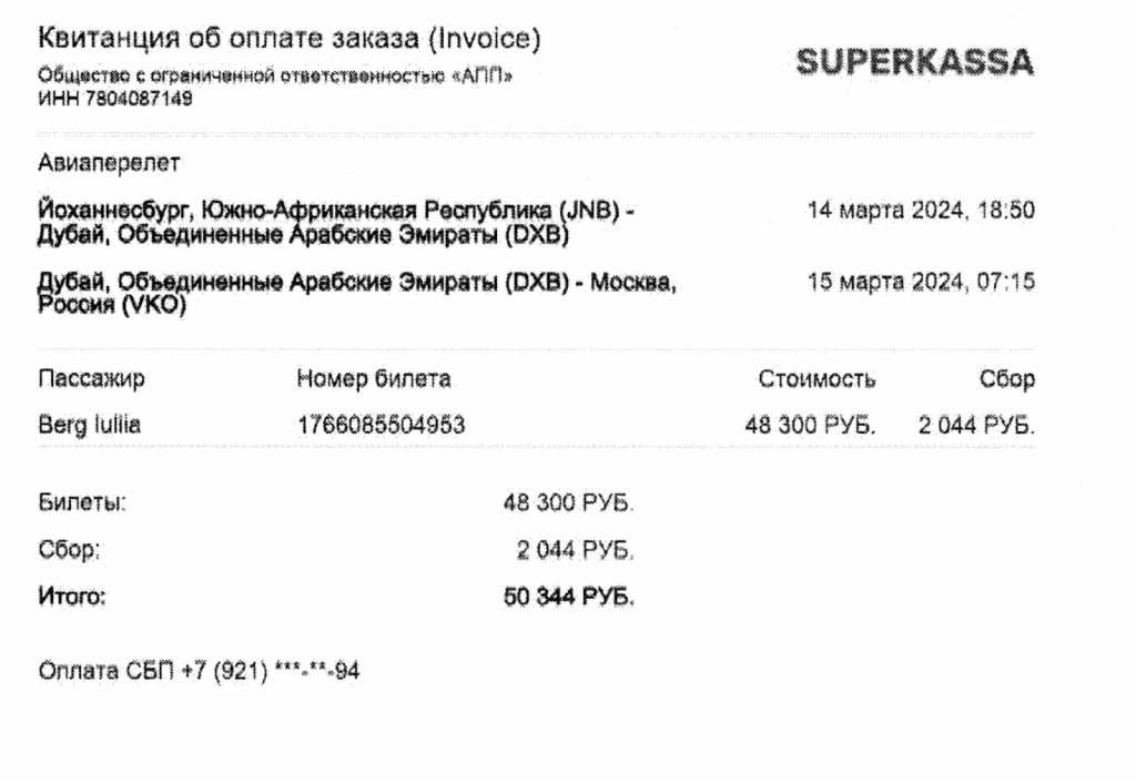 In March 2024, a ticket found in the leaked files shows Yulia Afanasyeva Berg, an historical figure of Africa Politology, travelling from Moscow to Johannesburg via Dubai.