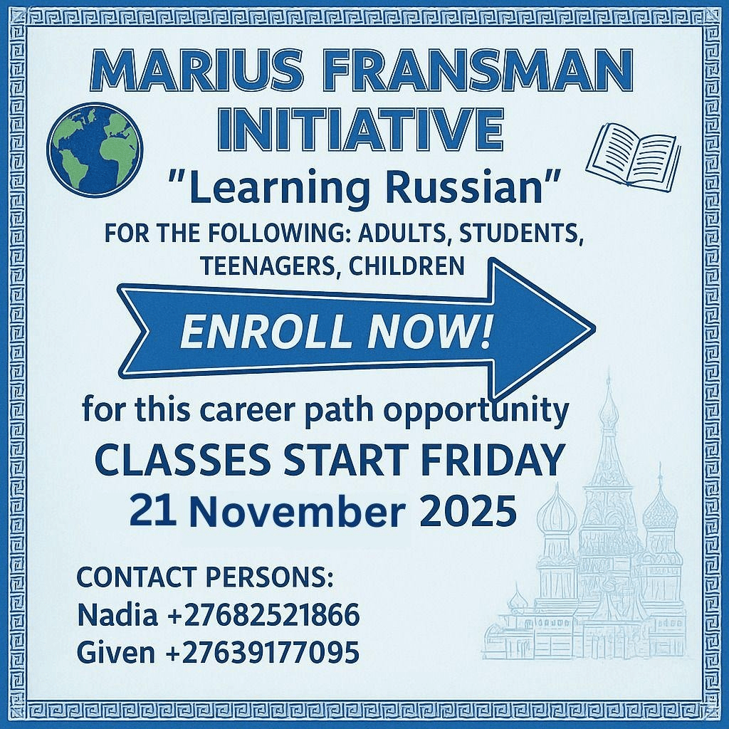 In November 2025, Fransman launched a course to learn Russian for his community arguing the need to reverse a trend based on South African elites preventing people and small business owners to work with the BRICs countries including Russia while making the biggest profits with them.