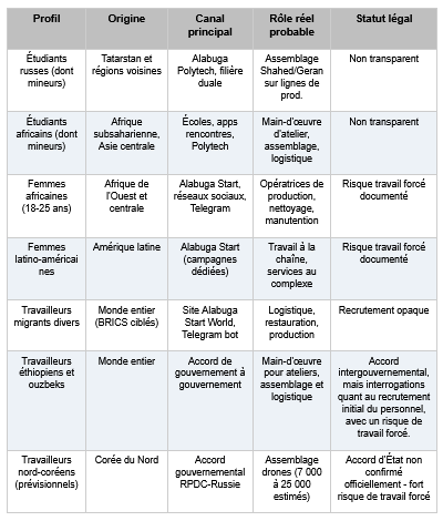 Si certains États, tels que la Corée du Nord, peuvent agir en tant que complices volontaires au sein de cette machine militaire — et si les citoyens russes y participent par devoir patriotique — les recrues internationales peuvent, quant à elles, ignorer qu’elles sont entraînées au cœur du nouveau complexe militaro-industriel du Kremlin.