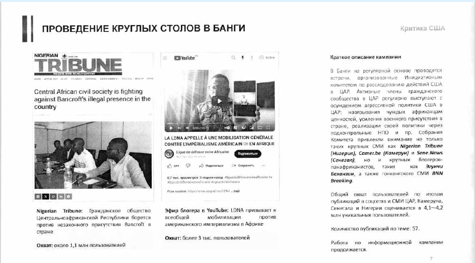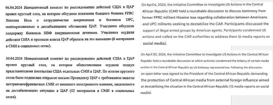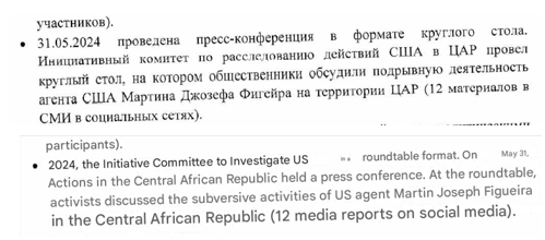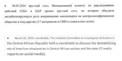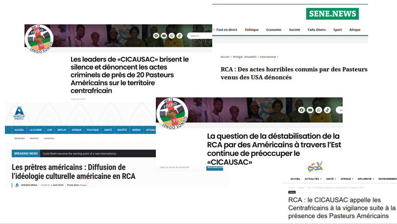 CICAUSAC’s accusations towards American Christian missionaries follow a well-oiled media laundering machinery appearing in SVR-controlled Politlogy’s media: Lengo Songo, Afrique Media, le Potential Centrafricain, Senenews and more largely for CICAUSAC’s overall campaigns in Njoni Songo.