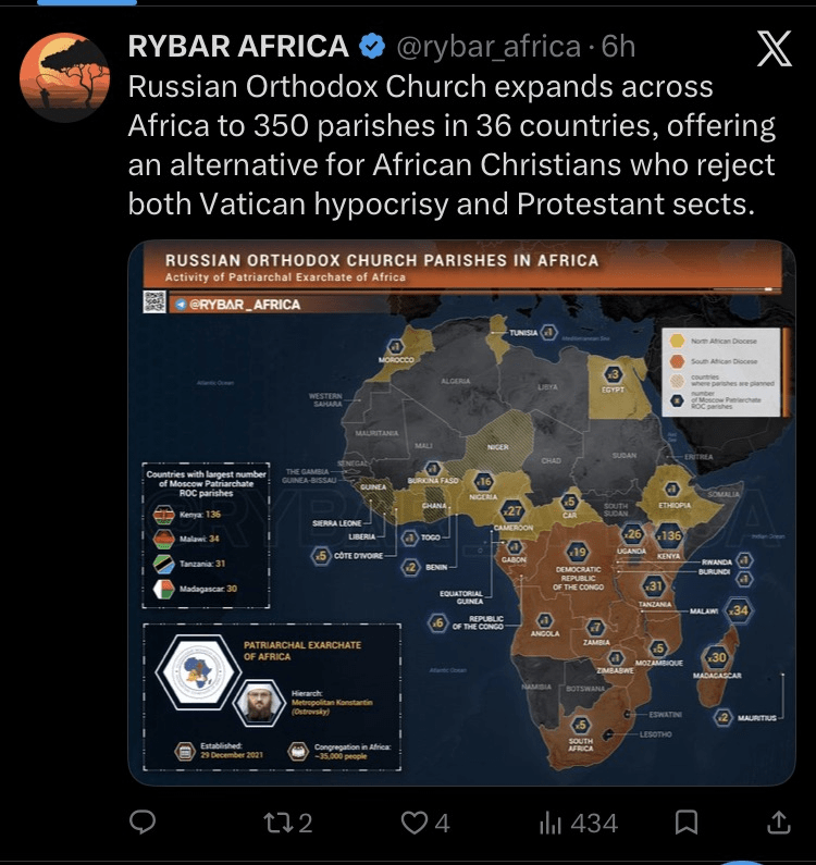 Within this framing, the Vatican is recast as a subversive proxy of Western influence in Africa—making it a priority target for narratives aimed at eroding its credibility, fracturing trust among believers, and ultimately expanding Russia’s own influence on the continent.
